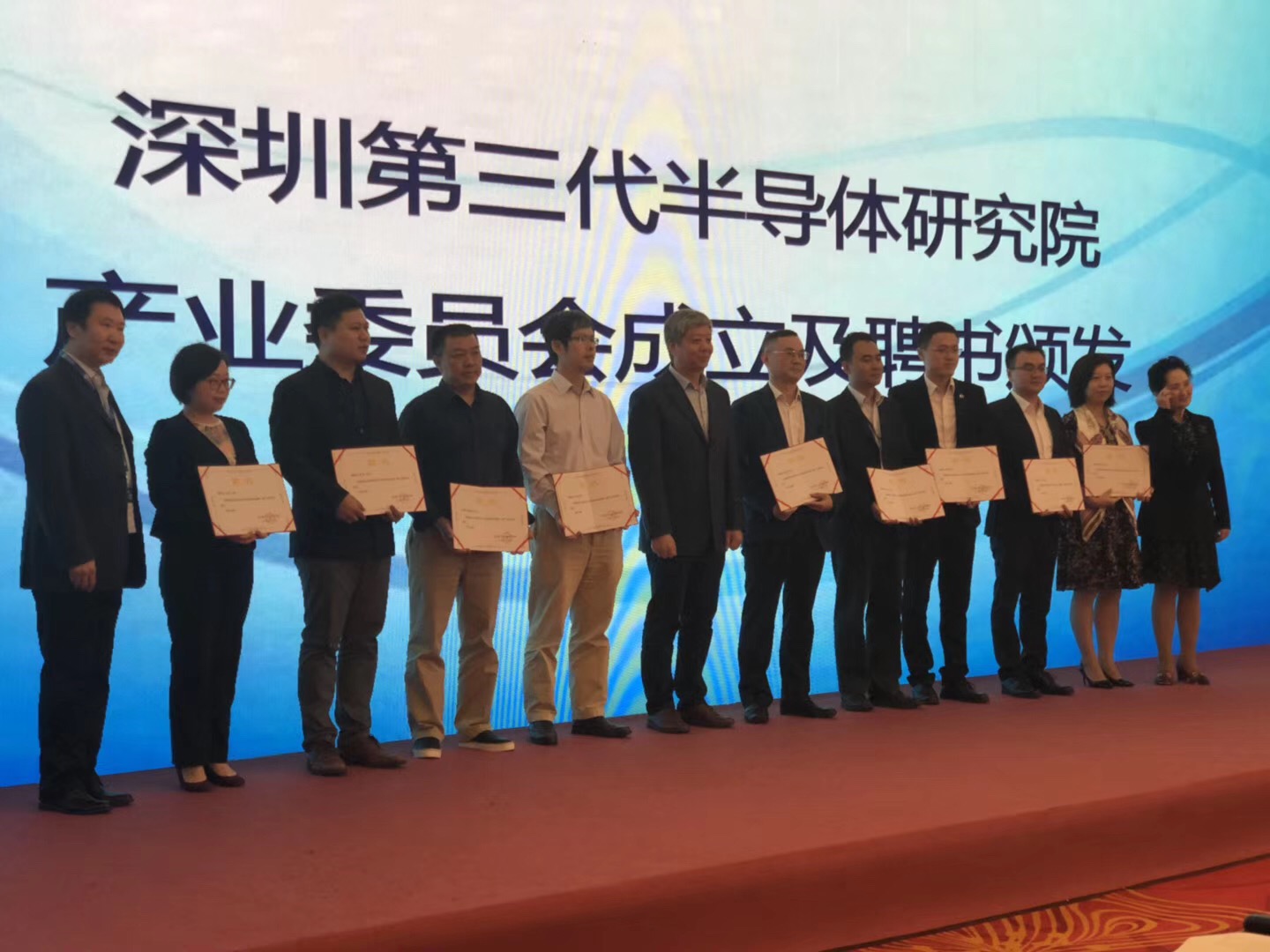 金章育與國(guó)家第三代半導(dǎo)體產(chǎn)業(yè)聯(lián)盟吳玲秘書長(zhǎng)、科技部高新司曹國(guó)英副司長(zhǎng)合影留念