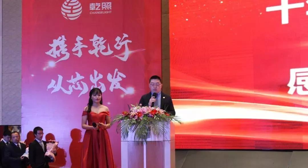 2019年1月25日,揚州乾照光電“攜手乾行,從芯出發(fā)”10周年慶暨尾牙晚宴在揚州香格里拉大酒店落下帷幕。乾照光電董事長金章育,總裁蔡海防,公司全體高管以及揚州乾照光電員工共1100余人參加。乾照光電創(chuàng)始人、原董事長鄧電明,以及部分供應商代表等嘉賓出席。