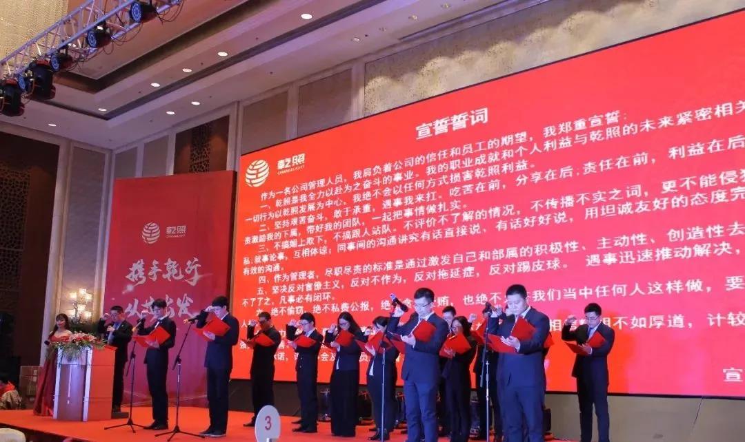 表彰后,舉行了管理層人員誓師大會。揚州乾照光電總經(jīng)理帶領(lǐng)公司經(jīng)理層以上管理人員20余人,面對全體員工莊嚴宣誓,將不辜負公司的信任和員工的期望,把乾照作為全力以赴奮斗的事業(yè),一切行為以乾照發(fā)展為中心,艱苦奮斗,勇于擔當,做到待人真誠、處事謙恭、簡單正直、質(zhì)樸堅韌,激發(fā)自己和部屬的積極性、主動性,創(chuàng)造性地去獲取勝利。