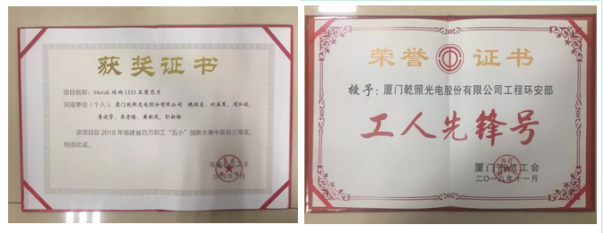2018年,乾照光電工會也得到了市總工會和區(qū)總工會的肯定與支持。公司研發(fā)的Merak結(jié)構(gòu)LED正裝芯片項目在2018年福建省百萬職工“五小”創(chuàng)新大賽中榮獲三等獎。公司工程環(huán)安部榮獲2018年廈門市“工人先鋒號”榮譽(yù)稱號。2018年10月,公司還承辦了“改革開放40周年禮贊—中國夢?勞動美”慰問演出暨“2019廈門職工春晚”翔安區(qū)節(jié)目海選專場活動。