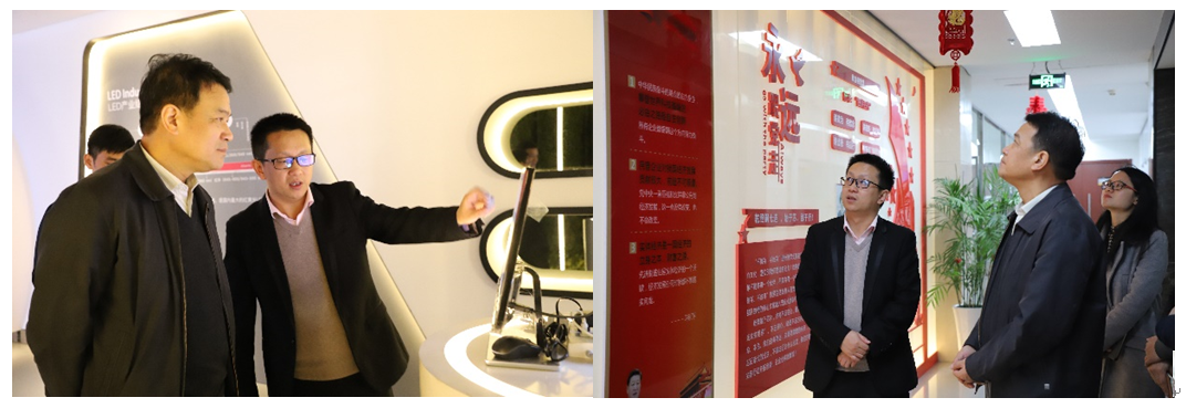 張書記一行參觀了公司展廳,了解了企業生產經營情況,并參觀了黨建文化墻、黨群活動中心和黨建活動室。他表示,乾照光電能夠充分發揮場地優勢進行黨建文化氛圍建設,形式好、內容實,值得園區內的其它非公企業學習借鑒。