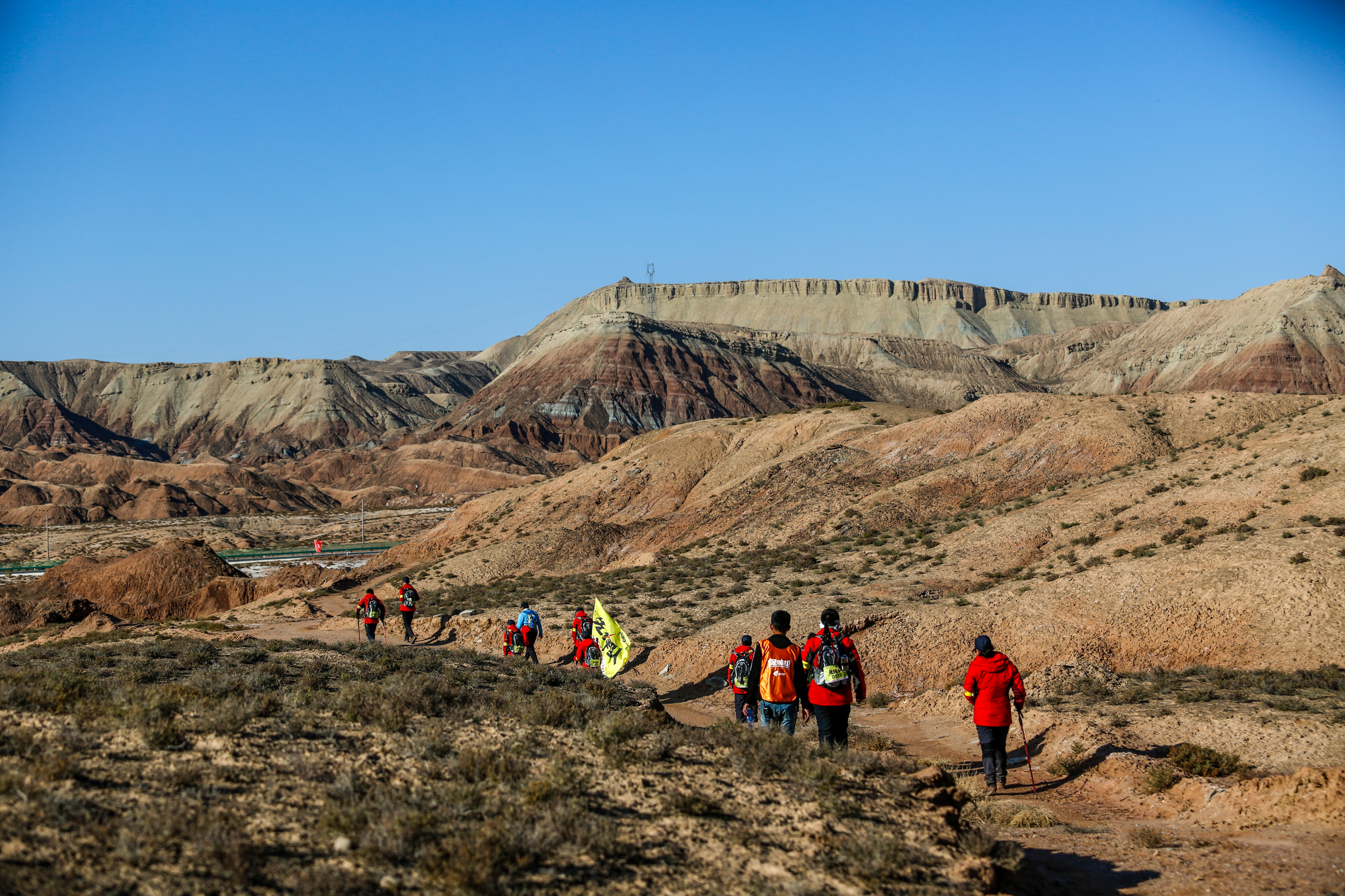 征途從平山湖擱井臺出發,以沙坡小鎮、羊臺山為營地,最終到達壕哇沙漠,縱穿丹霞、濕地、戈壁、沙漠四大險峻地貌。