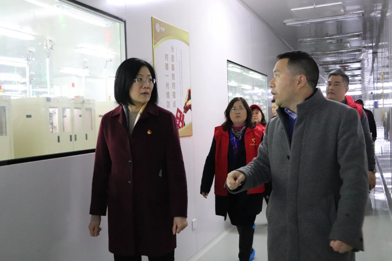 在公司展廳,錢廳長一行認真聽取了劉兆對公司發展歷程、生產經營情況、產品技術創新及應用領域的詳細介紹。隨后前往生產車間,劉兆對生產設備的操作情況和芯片的生產制作流程進行了詳細講解。錢廳長認真觀摩了產線的各個環節,對企業生產的自動化、智能化模式表示高度贊賞。