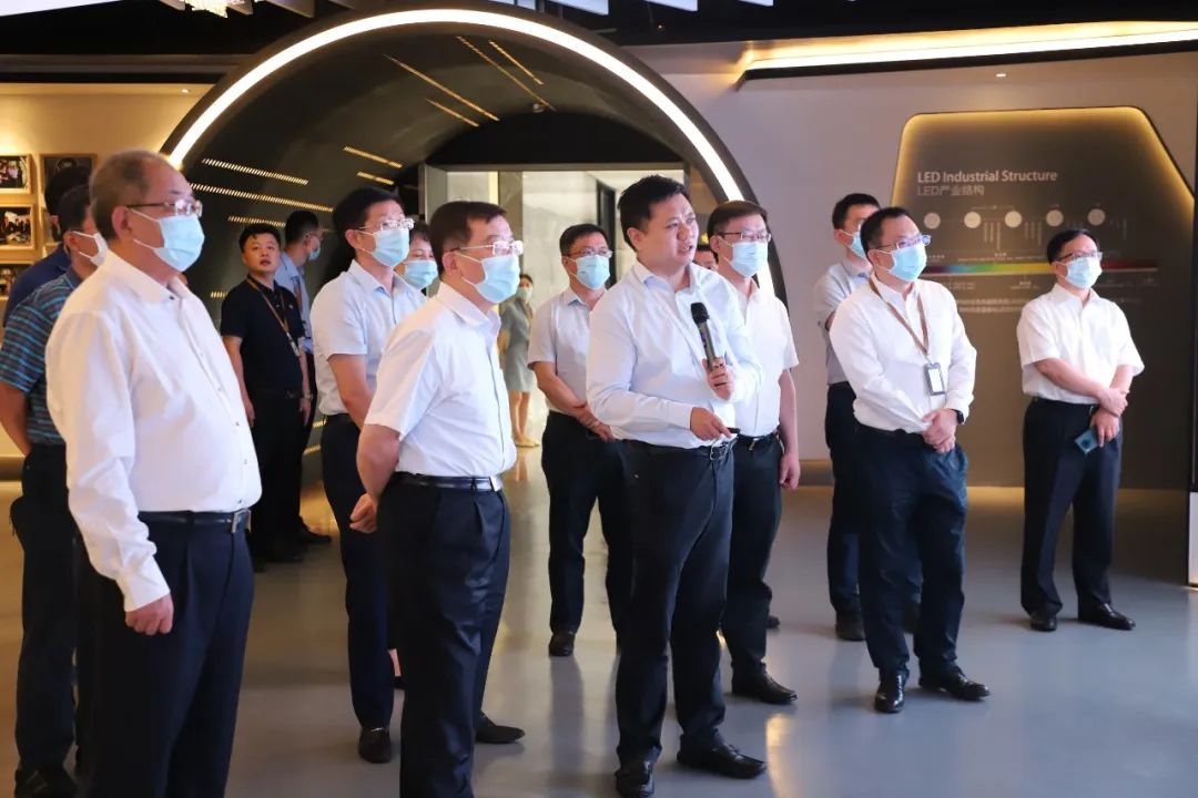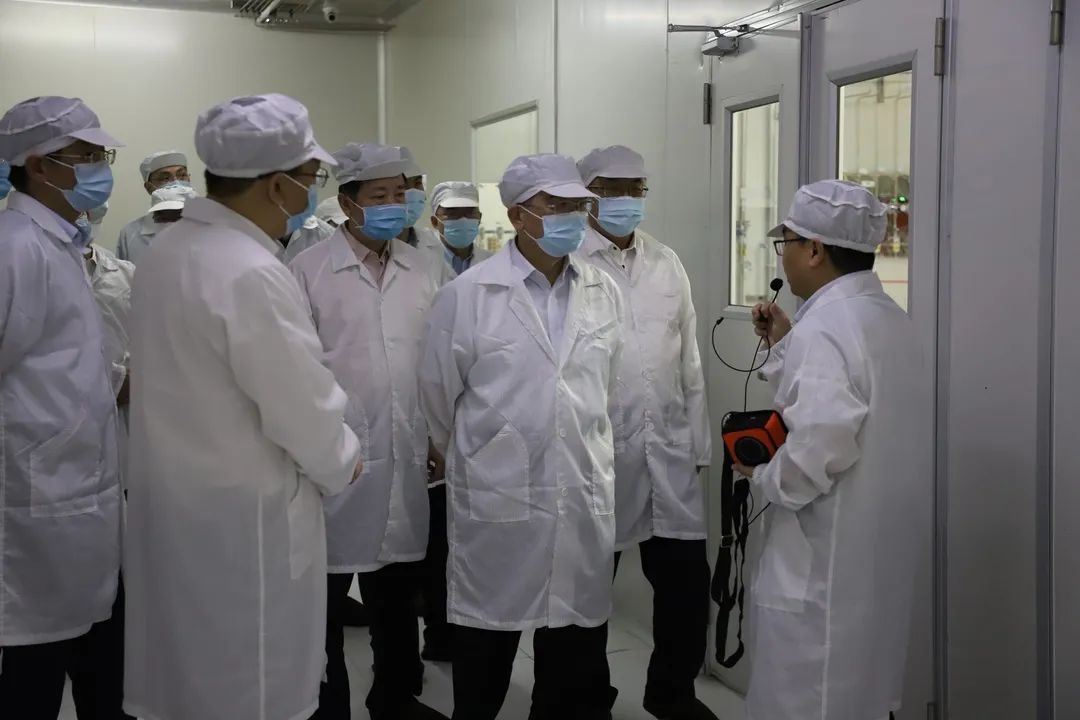 在公司展廳,調研組詳細了解了乾照光電發(fā)展歷程、生產經營狀況和戰(zhàn)略規(guī)劃等情況,徐樂江副部長對公司產品技術及應用領域等方面進行了細致的詢問。隨后,調研組前往外延制造部生產車間,查看車間生產情況,了解生產制造流程。徐樂江副部長對企業(yè)當前發(fā)展的態(tài)勢和智能化生產表示肯定,并指出企業(yè)要提高自主研發(fā)創(chuàng)新能力,加快科技成果轉化,提高核心競爭力,協(xié)同產業(yè)鏈上下游企業(yè)強強合作,為經濟高質量發(fā)展做出更大貢獻。