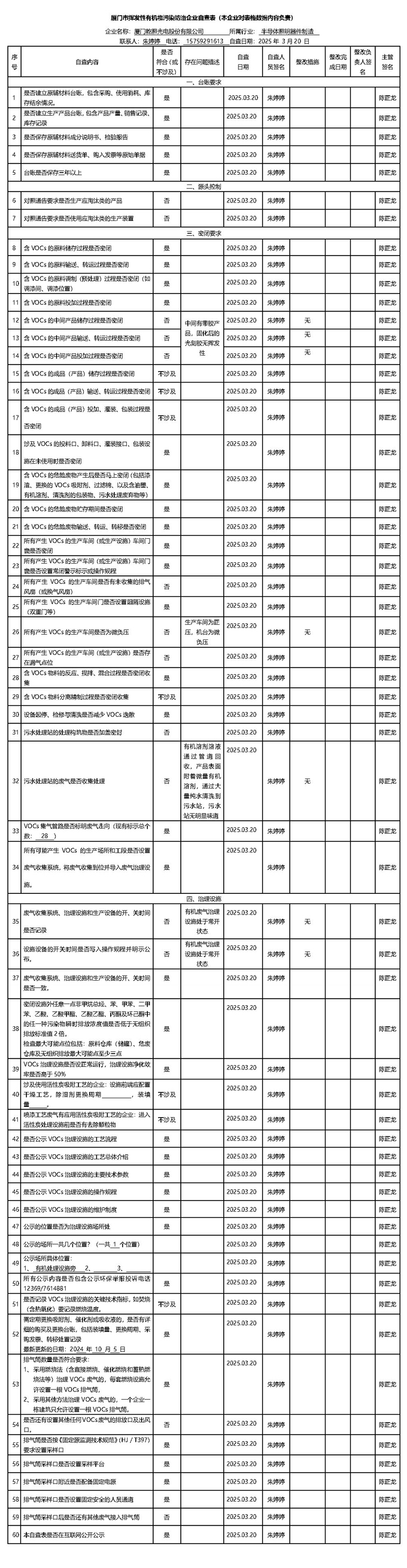 揮發性有機物污染防治企業自查表